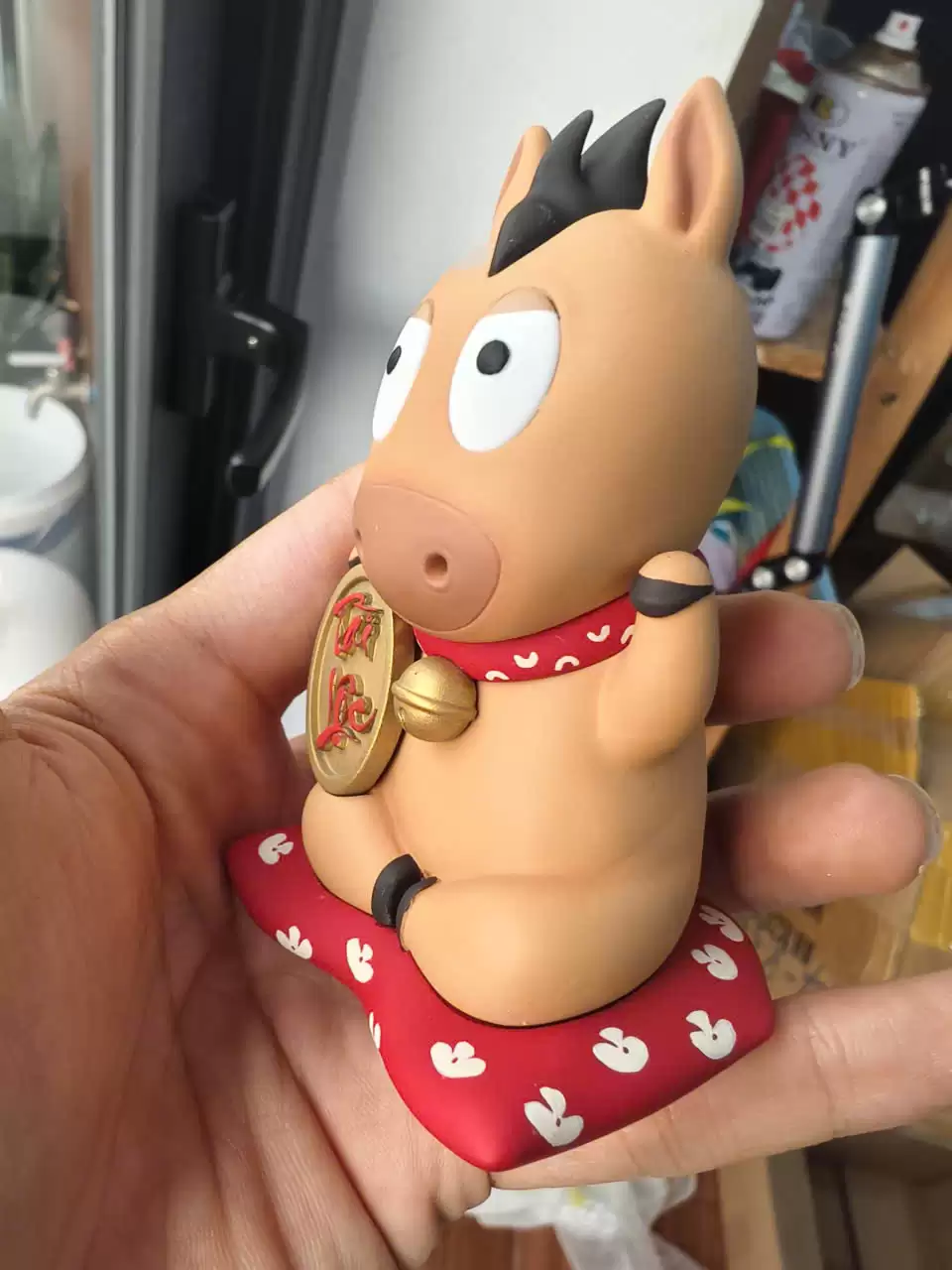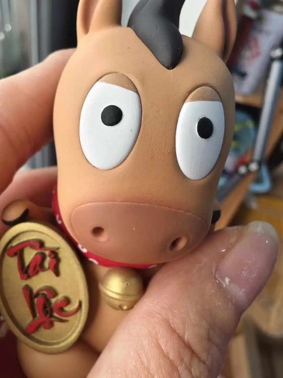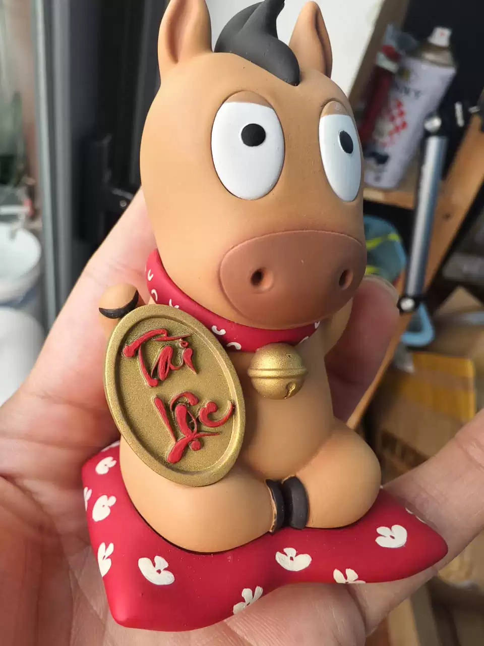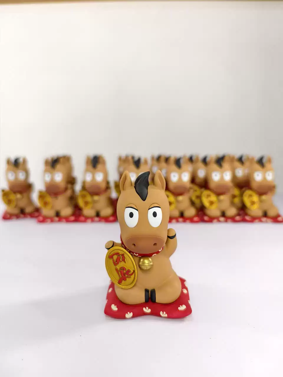 Điểm nhấn Decor sang trọng: Với chiều cao 9cm, phiên bản này có độ “đầm” và chi tiết sắc sảo hơn hẳn. Màu sắc phối vàng – đỏ (hoặc tông màu tài lộc) cực kỳ bắt mắt, làm sáng bừng không gian phòng khách hay bàn làm việc ngày Xuân.